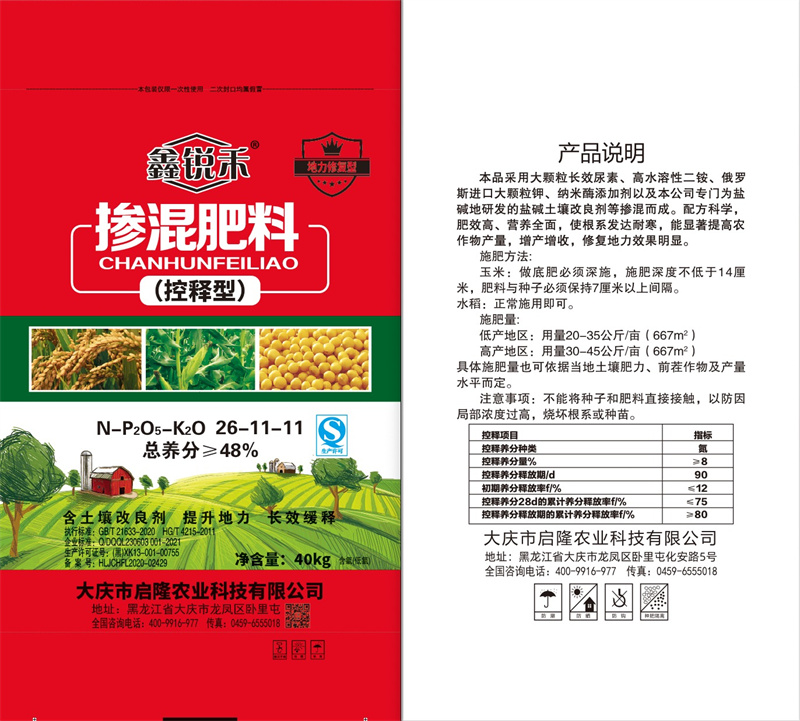 產品說明:本產品采用大顆粒長效尿素,高水溶性二銨,俄羅斯進口大顆粒紅鉀摻混而成。配方科學,肥效高、營養均衡,使根系發達耐寒,結粒到頂,能顯著提高農作物產量,增產增收效果明顯。